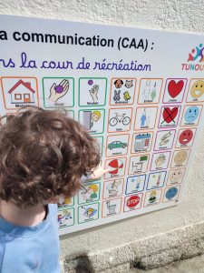 Un tableau de langage assisté (TLA) a été installé dans la cour de récréation.